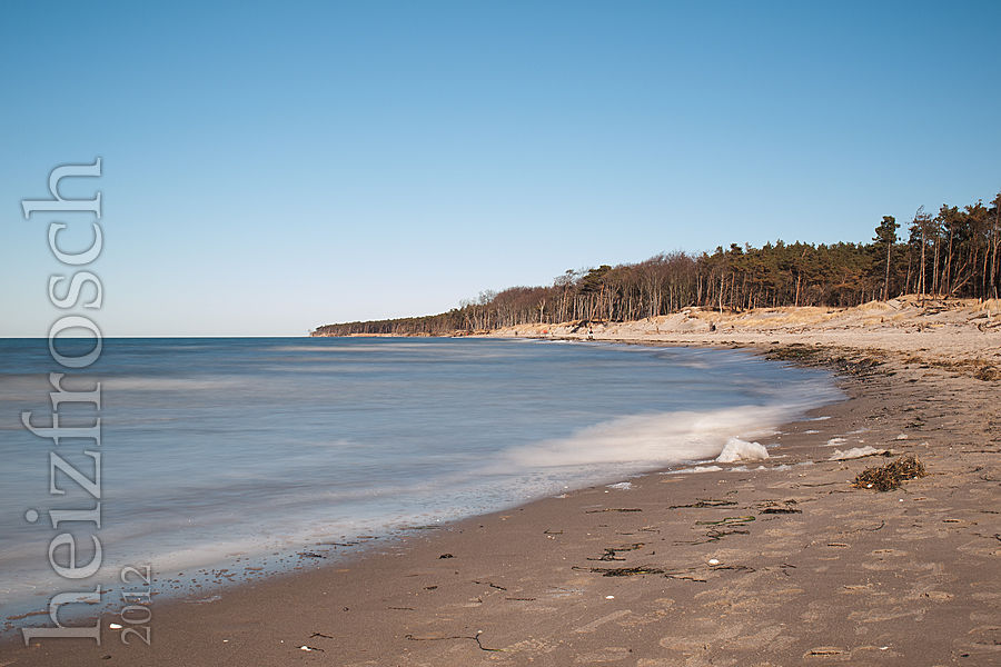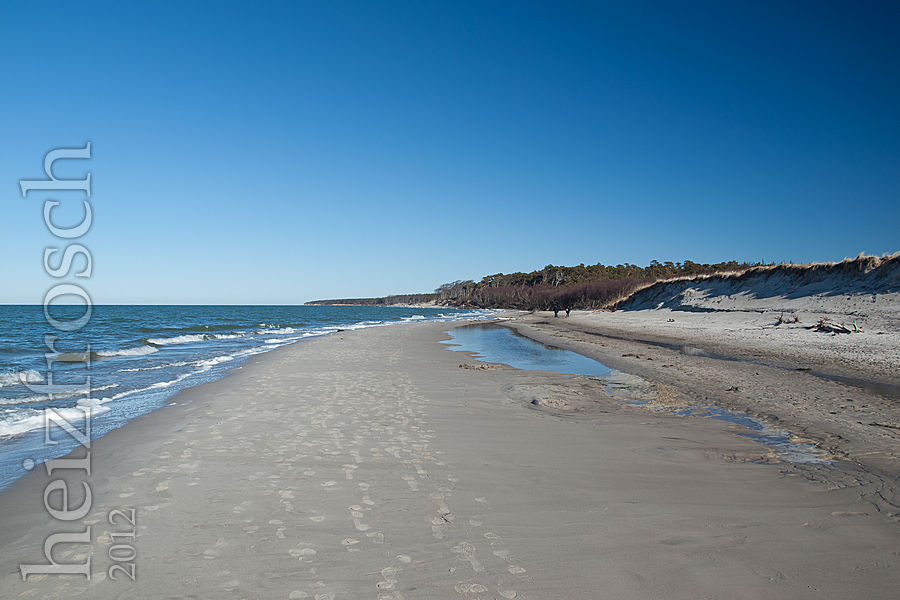 Es wird ausgeschlafen, aber wir sind trotzdem schon gegen 9 Uhr wach. Nach dem Frühstück melden wir uns kurz bei unseren Quartiervermietern an, denn diese waren gestern unterwegs und haben uns die Hütte deshalb einfach unverschlossen hinterlassen. Draußen scheint die Sonne, blauer Himmel lädt zum Spaziergang, und so bricht der heizfrosch zu einer Tour zum Weststrand auf, während Frau R. sich etwas später in Richtung Wustrow in Bewegung setzt.