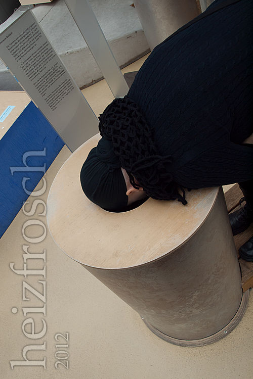 Eine davon ist die »Arche« in Wieck, ein ökologisch korrekt gebautes Museum rund um die Natur des Darß mit angeschlossenem Künstlerhaus. Der Rundgang lässt sich mit Hängen und Würgen auf eine reichliche Stunde ausdehnen, und obwohl die »Arche« noch nicht allzu alt ist, haftet an ihr schon ein bisschen der Charme des Verfalls. Aber wir haben doch viel gemacht: 2 Filme gesehen. Mit der Anlandung von Sand experimentiert. Die Winderosion – im wahrsten Sinne des Wortes – angekurbelt. Und neues Wissen über die Küstenlinienentwicklung erworben, mit dem wir sogar die Vermieterin beeindrucken konnten. An einer Wand hängen ein paar 08/15-Leinwanddrucke von 08/15-Naturmotiven (u.a. ein verwackelter Baumpilz und ein langweiliger, einzelner Baum in der Landschaft), die mit jeweils ~300 EUR ausgepreist sind. Mich überfällt ob dieses Enthusiasmus' ein spontaner Lacher, und ebenfalls spontan entfällt der mögliche Besuch im Künstlerhaus.