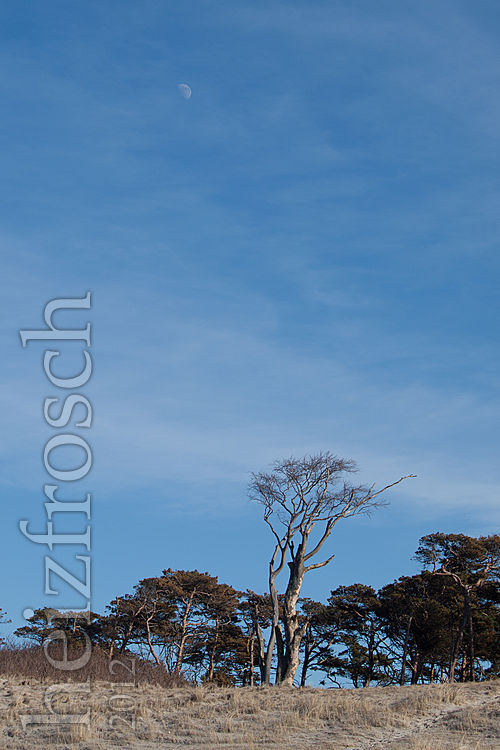 Augen auf, Blick aus'm Fenster – och nö, nä? Schon wieder Suppe? Der Wetterbericht hatte doch Sonne versprochen … Aber wir lassen uns stimmungsmäßig nicht unterkriegen; gegen 11 Uhr erreicht die Wetterfee endlich den Darß und es klart schlagartig auf. Also nix wie ins Auto und nochmal ab zum Weststrand!