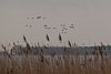 Und wir haben Blessgänse gesehen! Der Schwarm befand sich auf dem Weg ins Sommerquartier und machte auf den Wiesen am Bodden Futterrast. Hach, die Natur!